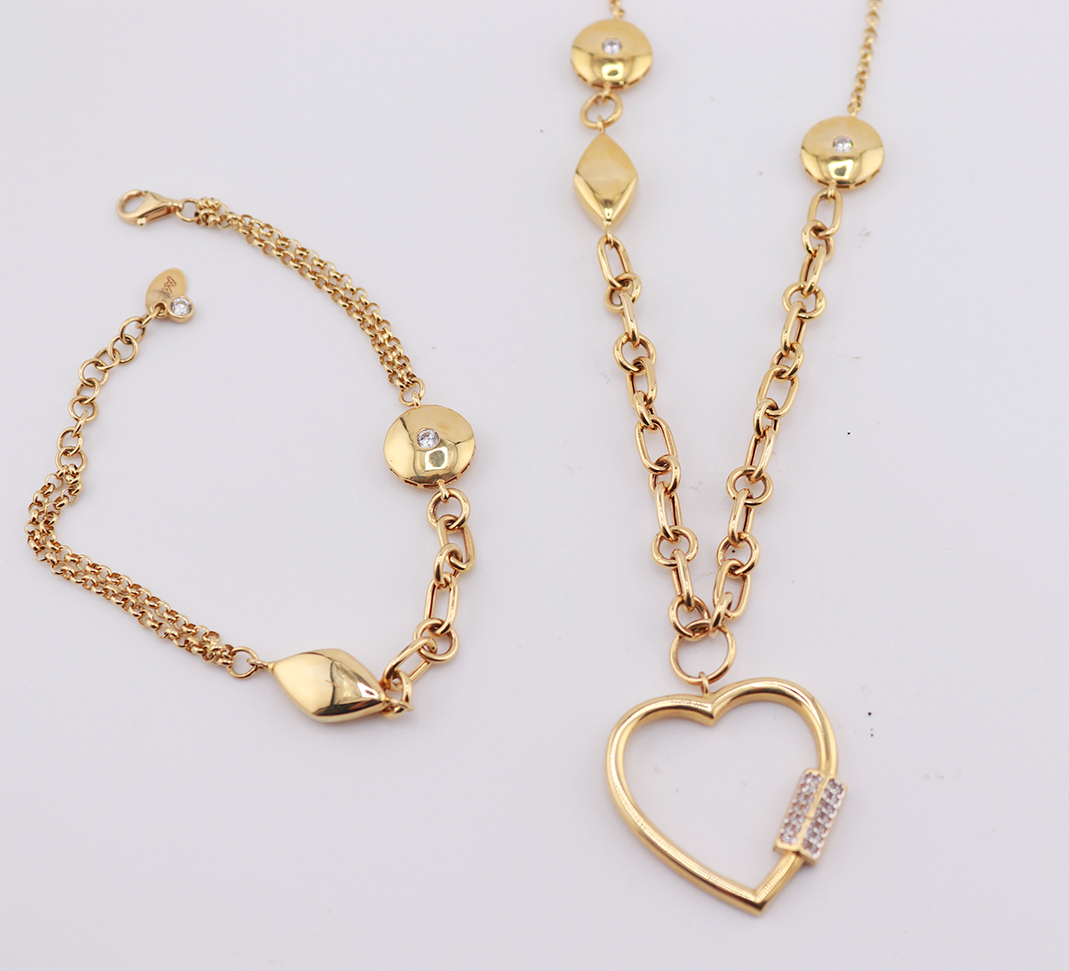 18ct yellow gold fancy chain and bracelet set with charms and cubics
